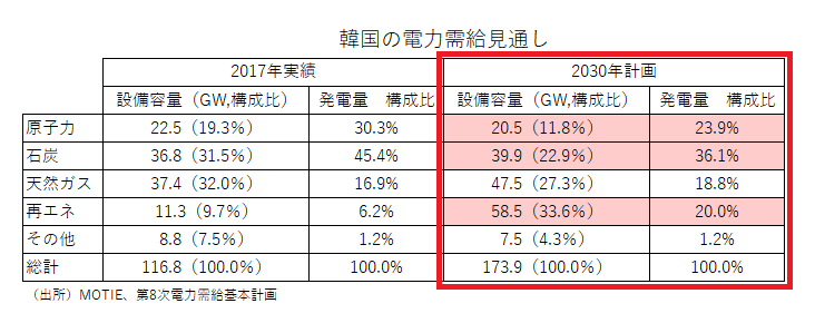 また、原子力発電については設備容量を削減し、さらに発電量の構成比を2017年の実績、30.3%から2030年には23.9%とすることを計画しています。 石炭による発電についても削減の方針が盛り込まれており、こちらは2017年の実績構成比の45.4%から2030年には36.1%にすることが計画されています。